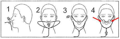 Breng het neusslangetje aan en plak het slangetje vast met de stickers aan beide kanten naast de neus.