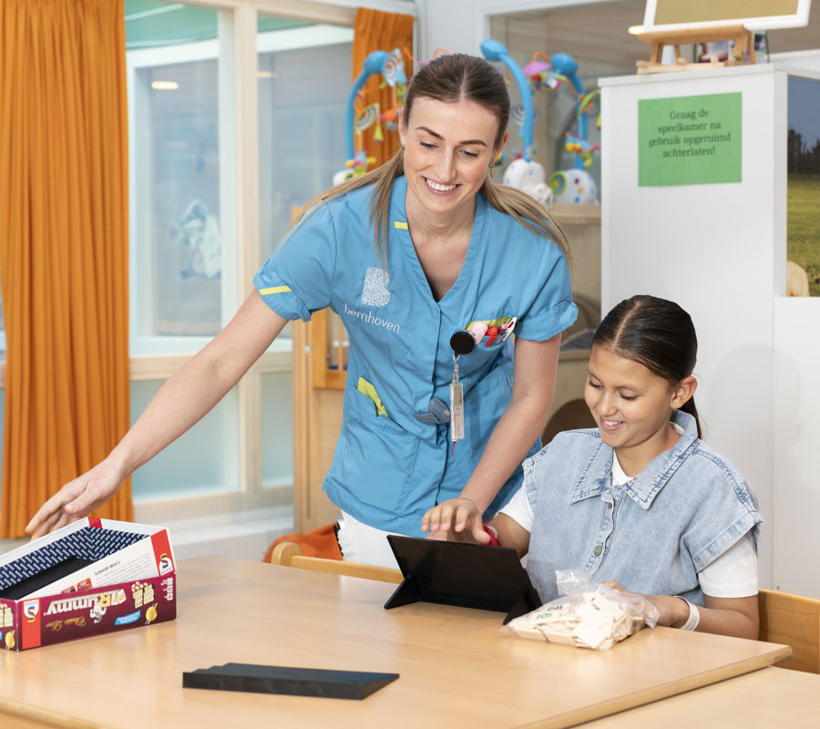 We kijken in Bernhoven altijd verder dan de ziekte. Een gezonde ontwikkeling en leefstijl van je kind vinden wij heel belangrijk. Daarom betrekken we naast de kinderarts en verpleegkundigen ook vaak de pedagogisch medewerker, kinderdiëtist, kinderfysiotherapeut en de kinderpsycholoog bij de zorg van je kind.